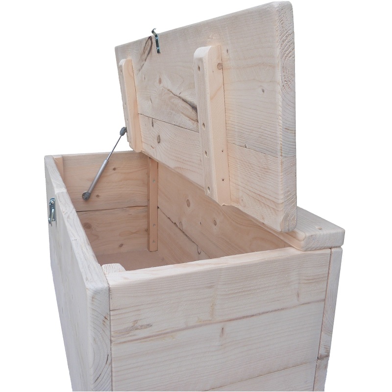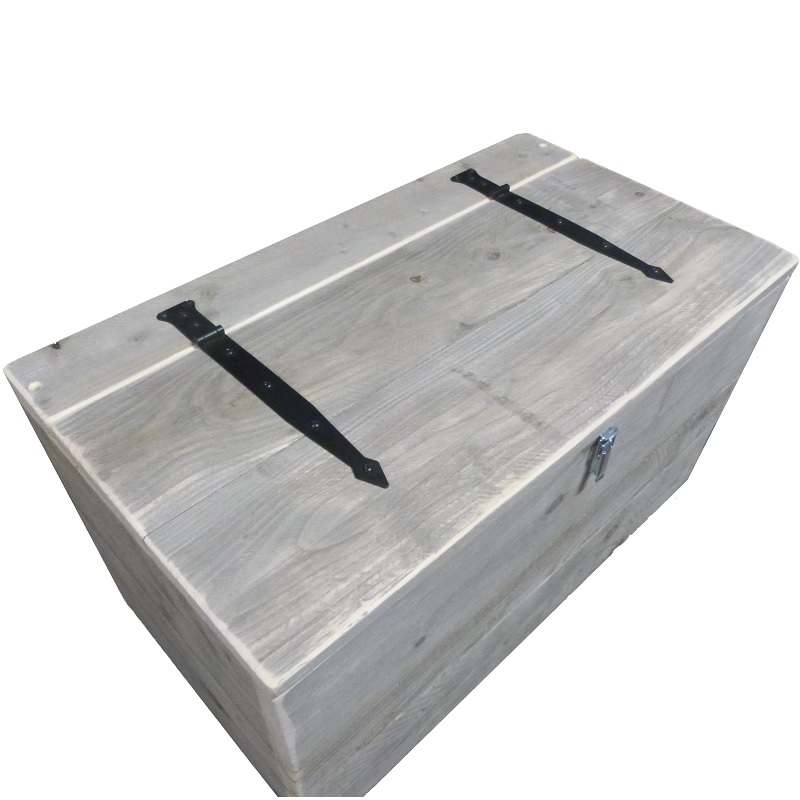 U heeft precies een hoekje waar u een bankje of kist zou willen hebben maar er is nergens een opbergkist in de goede afmeting te vinden? Bij ons kunt u een speelgoedkist precies op gewenste maat bestellen. Zo heeft u altijd een maatwerk kist die voldoet aan uw wensen. Als u andere wensen heeft kunt u altijd bellen of mailen. De kist is gemaakt van mooi vergrijsd en gedroogd steigerhout. Standaard hoogte is 42 cm incl klep andere hoogte wordt door middel van een pasplank in het midden van de kist gemaakt. Als optie kunt u een gasveer en zwarte gehengen kiezen. Ook is het mogelijk om 4 geremde zwenkwielen bij de kist te bestellen.