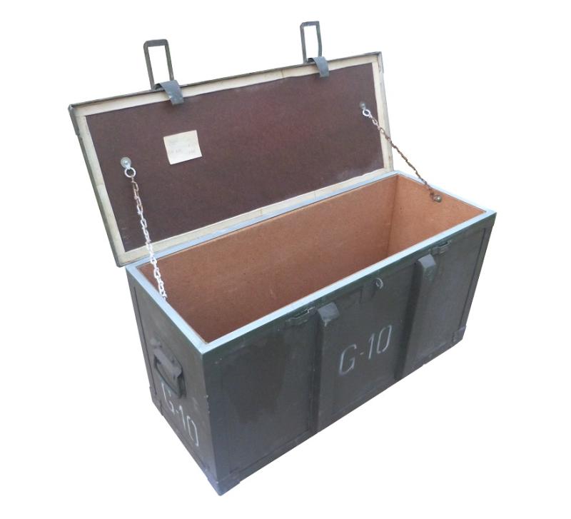 Zoekt u een handig opbergbankje? De gebruikte legerkist is ook als kinderbankje voor in de speelhoek te gebruiken. Alle speeltjes netjes opgeborgen op een eigen plekje, en toch binnen handbereik voor uw kleintje. De kist heeft in het leger dienst gedaan als munitiekist en is naast praktisch ook een prachtig vintage meubelstuk in uw woon of kinderkamer. De kist met overslaggrendels is aan de binnenkant mooi afgewerkt met hardboardplaat. De buitenhoeken en deksel zijn afgewerkt met ijzeren hoekstrips, kortom een zeer degelijke opberger die tegen een stootje kan.